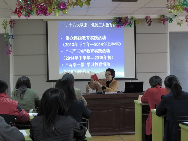 钮书记首先回顾了十八大以来党的三大教育活动:群众路线教育实践活动,“三严三实”教育实践活动和“两学一做”教育活动。这三大活动都是党中央加强党的建设、推动全面从严治党的重大举措。不同之处在于群众路线教育实践活动和“三严三实”采取集中性教育的方式对党内的“关键少数”加强作风建设,而“两学一做”是采取经常性教育的方式对全体党员进行教育,抓实基层支部,着推进思想建党、组织建党、制度治党,增强党员政治意识,大局意识,核心意识,看齐意识,坚定理想信念,保持对党忠诚,树立清风正气,勇于担当作为,充分发挥先锋模范作用。