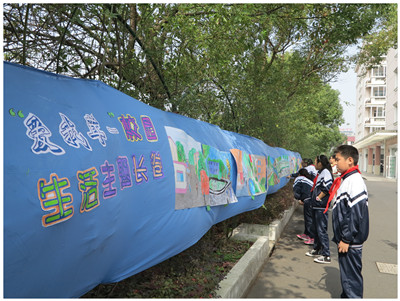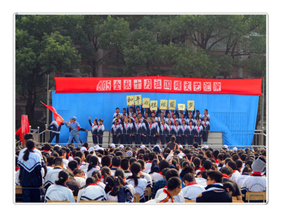 “金秋十月祖国颂”艺术节是我校的传统活动,今年艺术节的系列活动丰富多彩,缤纷的色彩渲染着校园:浏览“我和国旗在一起,带着国旗去旅行”的摄影作品,爱国之情油然而生;同学们精心绘制的艺术节海报五彩缤纷,充满了艺术创想;而蔷薇花架上的一幅长长的画卷生动活泼,趣味盎然,这幅由六、七、八年级十八个班级在美术老师精心指导下绘制、拼贴而成的长卷展现了茸一校园的各处景象,学生以画笔抒发了“我爱茸一”的情感;而艺术节的重头戏就是各班精心准备的文艺节目汇演。
