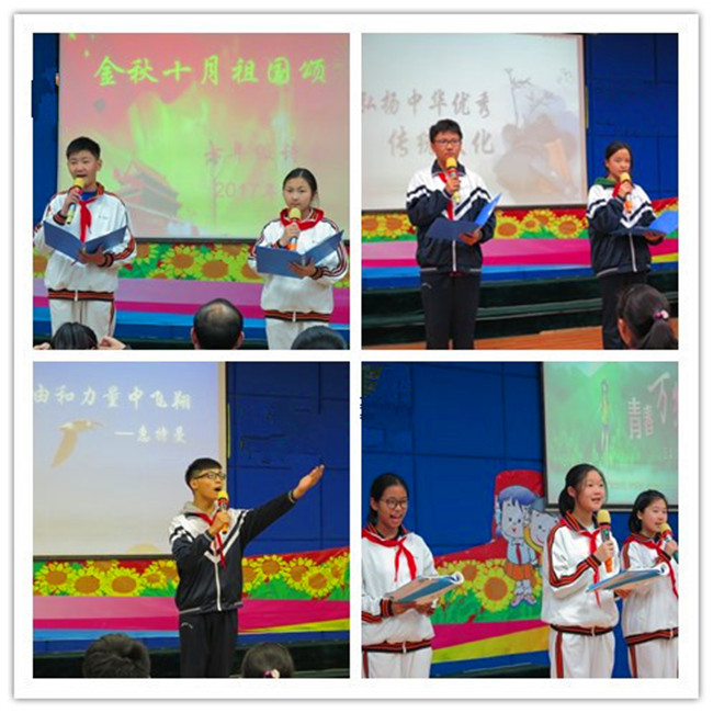 在盛秋的十月末,我们迎来了七年级“金秋祖国颂——诗歌大会暨国歌比赛”。10月31日,全体七年级同学相聚在阶梯教室,在主持人声情并茂地开场后,精彩的表演正式开始。各班茸一好声音学员为大家展现了中外诗人对于青春与自由的追求:我要在自由、欢乐、力量和意志中展翅翱翔;对于生活,我又充满了梦想,充满了渴望!诗歌朗诵后,钮老师满怀深情地带领全体同学诵读方志敏《可爱的中国》。然后在钮老师的伴奏下,我们每班高唱国歌。国歌是国家的象征,我们每个人都带着对国家最深沉的爱放声歌唱。最后,全体同学满腔热血地唱出《歌唱祖国》,圆满地结束了这次诗歌大会。