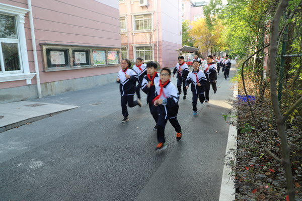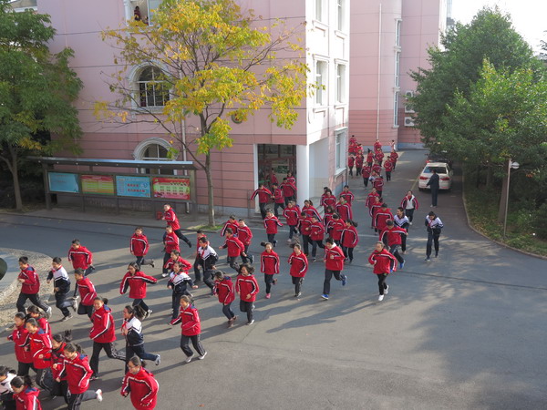 随着急促的哨音和广播中要求撤离的呼喊,师生们立即快步奔走出教室和办公室。霎时楼道内、走廊上、校园的道路上挤满了人,但是在预案充分的情况下显得忙而不乱,快而不挤:当堂课的任课教师引导学生从不同楼道撤向集合点;根据预案要求部分教师站在每个层面的楼道口组织学生有序撤离,防止踩踏事故;操场上及时进行人员的清点,保证每个人都安全地撤离险地。仅耗时2分41秒就完成了全校师生的撤离和清点,活动圆满成功。