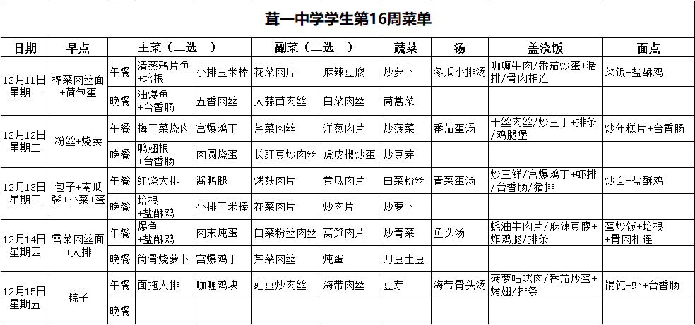 学生第16周菜单