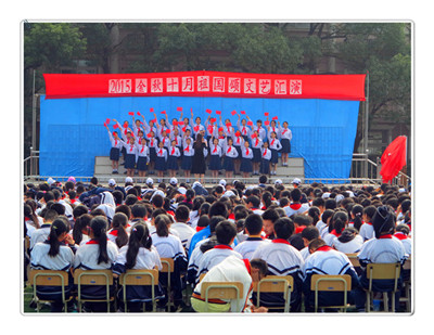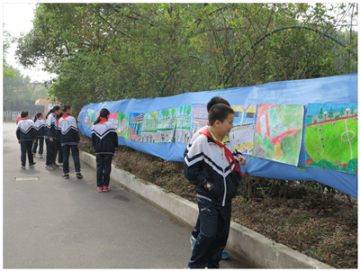 “金秋十月祖国颂”艺术节是我校的传统活动,今年艺术节的系列活动丰富多彩,缤纷的色彩渲染着校园:浏览“我和国旗在一起,带着国旗去旅行”的摄影作品,爱国之情油然而生;同学们精心绘制的艺术节海报五彩缤纷,充满了艺术创想;而蔷薇花架上的一幅长长的画卷生动活泼,趣味盎然,这幅由六、七、八年级十八个班级在美术老师精心指导下绘制、拼贴而成的长卷展现了茸一校园的各处景象,学生以画笔抒发了“我爱茸一”的情感;而艺术节的重头戏就是各班精心准备的文艺节目汇演。